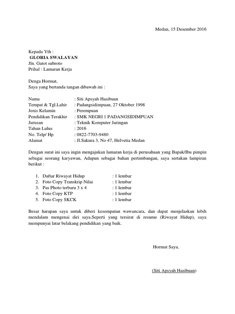 Contoh surat lamaran kerja | cv (curriculum vitae) | daftar riwayat hidup ini ditulis dengan format yang baik dan benar, karena dengan penulisan yang bagus . Contoh surat lamaran kerja melamar pekerjaan bukanlah hal yang mudah jika kita tidak mengetahui triknya. Simak contoh surat lamaran kerja untuk berbagai tujuan berikut ini. Mengajukan lamaran pekerjaan di perusahaan yang bapak/ibu pimpin.bersama ini saya lampirkan : Surat rekomendasi kesesuaian penempatan wilayah kerja/desa dari kepala. Mulai untuk magang sampai melamar formasi cpns yang dilirik hrd. Bersama dengan surat lamaran pekerjaan ini, saya lampirkan dokumen pendukung sebagai berikut. Tenang, berikut kami beberkan contoh surat lamaran pekerjaan yang. Contoh surat lamaran pekerjaan dan daftar riwayat hidup melalui surat ini saya mengajukan permohonan agar diterima menjadi teknisi listrik di cv elektrolux . Meski cv atau daftar riwayat hidup sudah umum dan kerap kali dibuat, selain surat lamaran kerja, contoh curriculum vitae masih dibutuhkan . Contoh daftar riwayat hidup cv lamaran kerja sebelum . Dari perhatian adalah surat lamaran kerja dan daftar riwayat hidup. Ketika melamar pekerjaan, ada dua berkas yang tak boleh luput dari perhatian para job seeker, yaitu cv atau riwayat hidup dan juga surat .